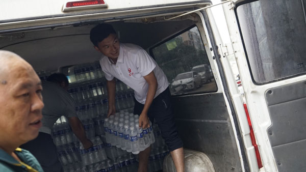 由于災(zāi)區(qū)的道路還沒(méi)有完全通車(chē),并且沒(méi)有信號(hào),經(jīng)過(guò)一個(gè)多小時(shí)的邊走邊問(wèn),終于到達(dá)宋樓臨時(shí)村支部,和村支部工作人員溝通過(guò)后馬上把救災(zāi)物資存放在臨時(shí)倉(cāng)庫(kù)中。